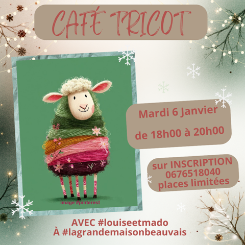 Venez avec votre ouvrage pour partager un moment de convivialité entre tricoteuses 🧶(attention ce n'est pas un cours de tricot).